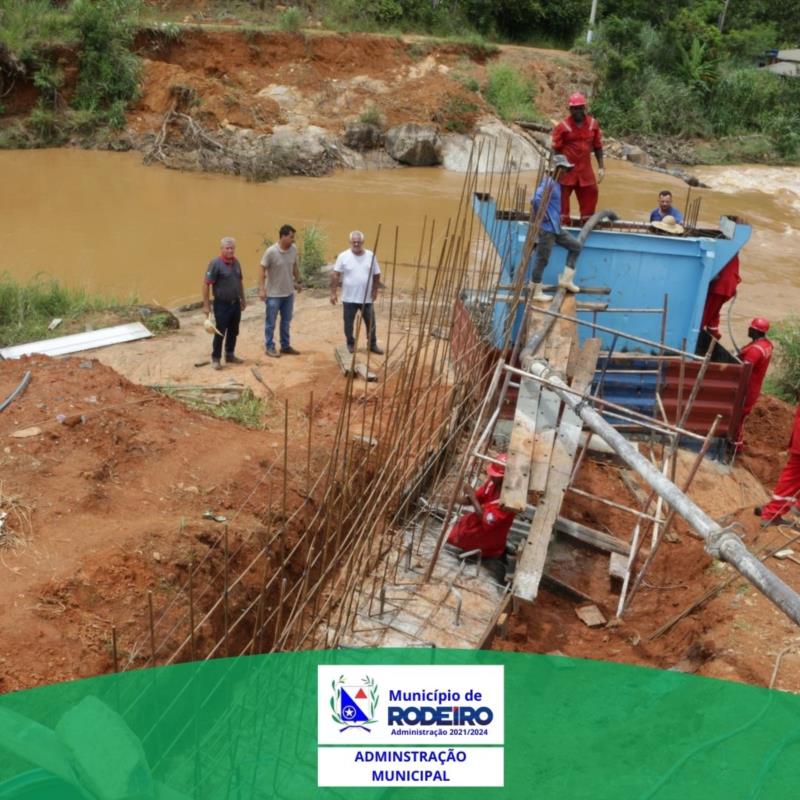 Neste dia 08 de fevereiro de 2022, a obra de construção da ponte do Queira Deus e Monumento do Guido entra em uma nova fase, está sendo realizada a concretagem do primeiro pilar de sustentação localizado na margem de Rodeiro.