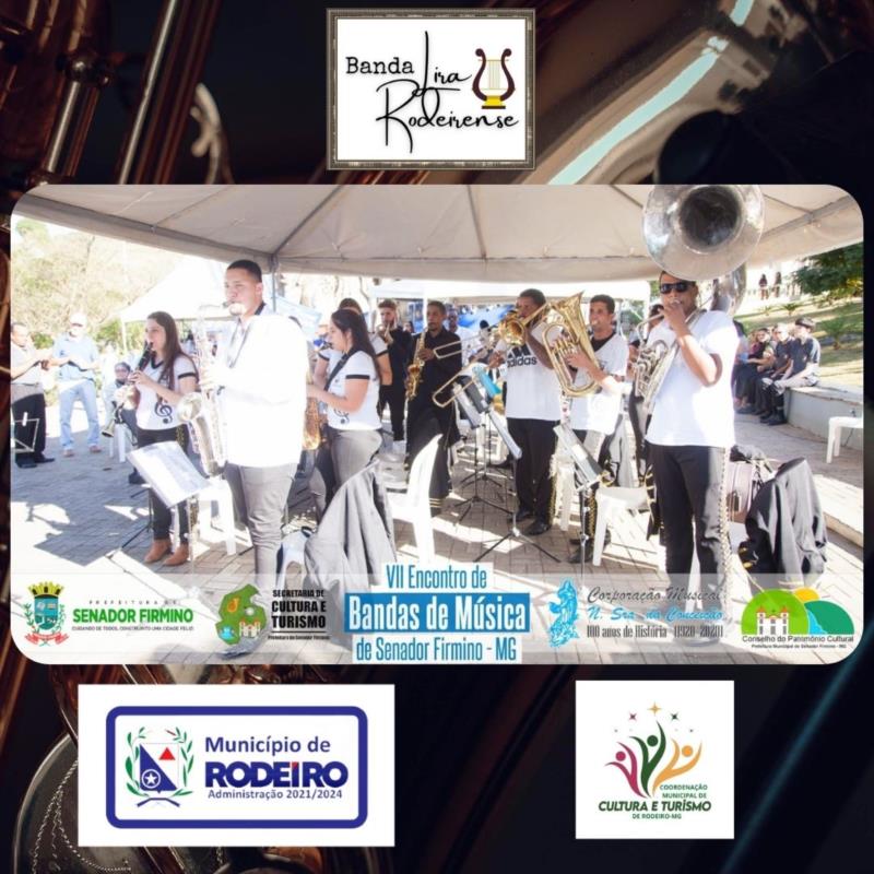 No último sábado dia 03 de julho de 2022 a Banda de Música Lira Rodeirense representou a nossa cidade no VII Encontro de Bandas da Cidade de Senador Firmino MG.