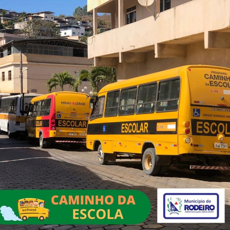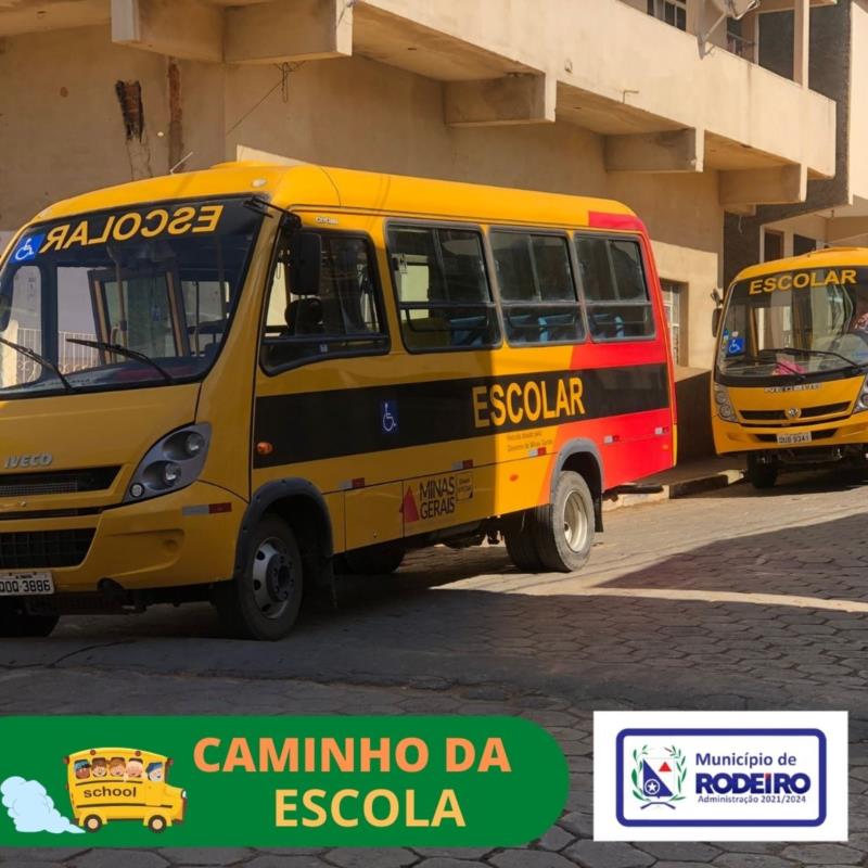 As Secretarias Municipais de Educação e Transporte de Rodeiro, no propósito de tornar nosso transporte escolar mais eficiente e seguro para nossos alunos, informam que já estão em circulação os novos ônibus para o transporte de crianças da zona rural e as que residem à até