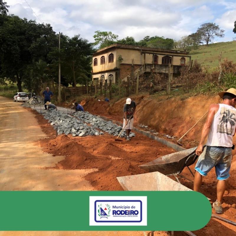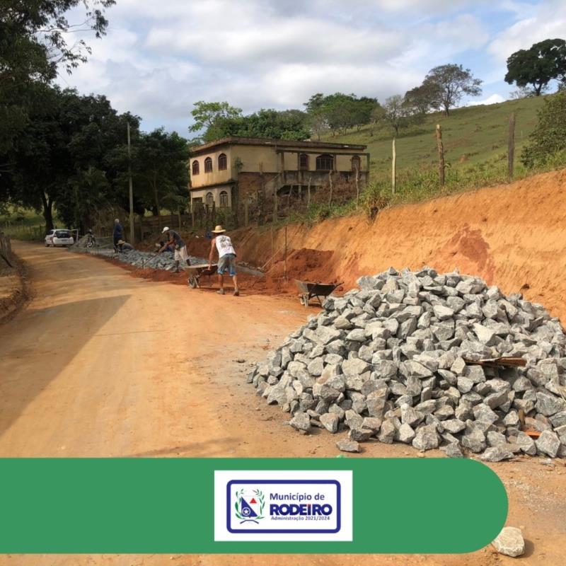Cumprindo com nosso compromisso de melhorar as estradas rurais, mais um trecho do nosso município tem seu calçamento iniciado, desta vez em parceria com a empresa Carioca Móveis, a estrada sentido Moradinha, está recebendo o calçamento de pedra fincada em uma área diagnosticada como de difícil acesso em dias chuvosos.