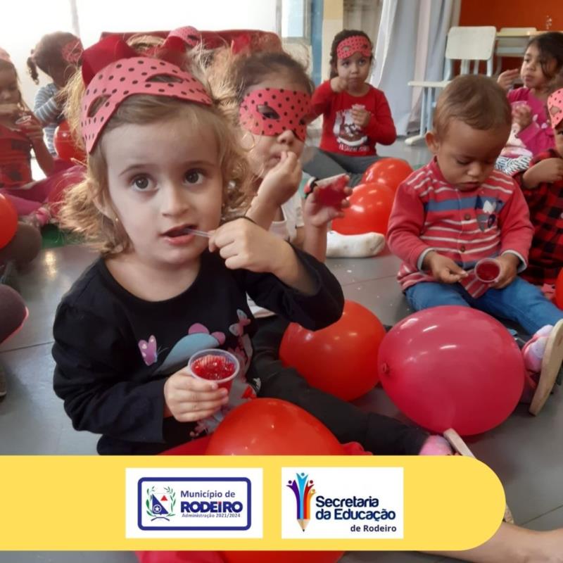 \r\nTambém realizamos " A festa do vermelho", onde as crianças puderam dançar e saborear uma deliciosa gelatina de morango.