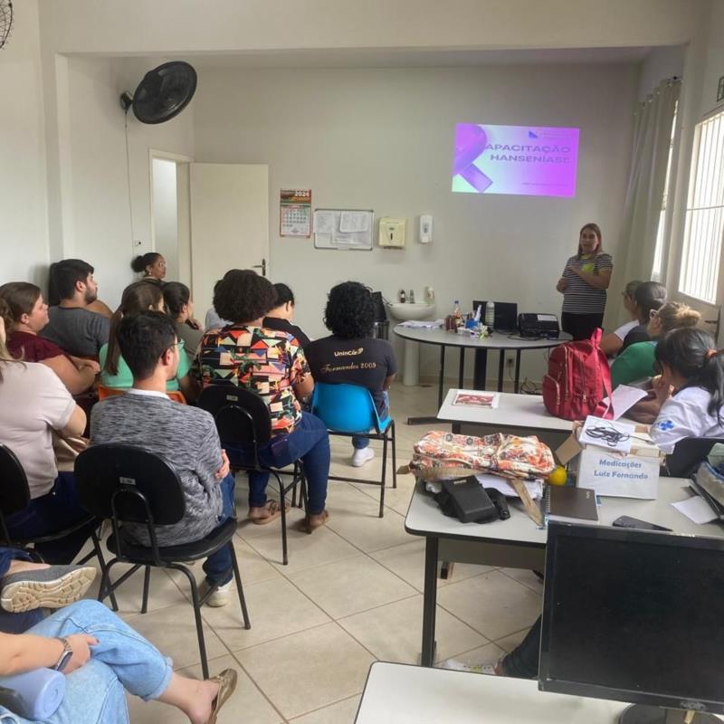 \r\nNo dia 19 de abril, aconteceu uma capacitação para os profissionais das ESF: médicos, dentistas, enfermeiros, ACS e recepcionistas. A enfermeira Poliana, que é referência técnica no município de hanseníase, abordou o tema e apresentou aos colaboradores o fluxograma de atendimento do paciente com suspeita ou positivo para hanseníase.