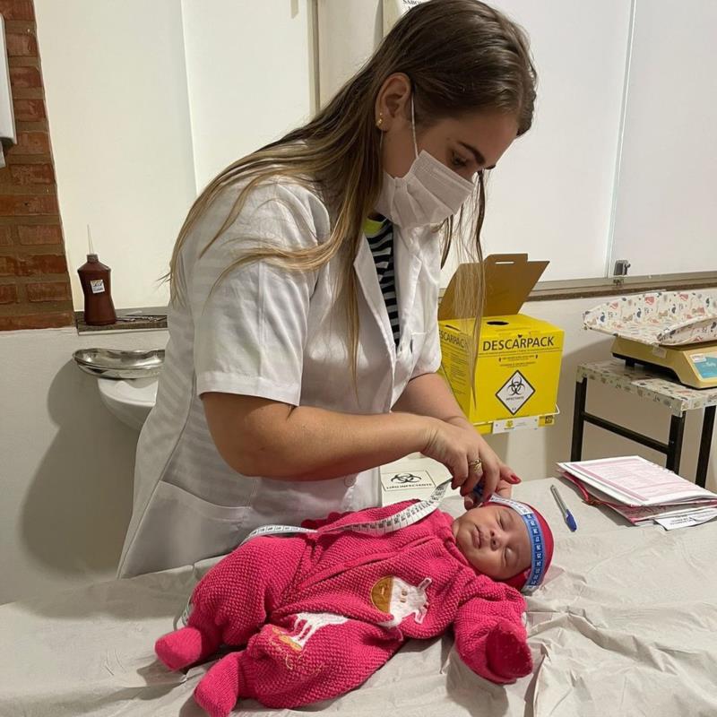 Durante a consulta, foram realizadas diversas avaliações, incluindo a antropométrica, visão, audição e desenvolvimento intelectual, além da análise do teste do pezinho.