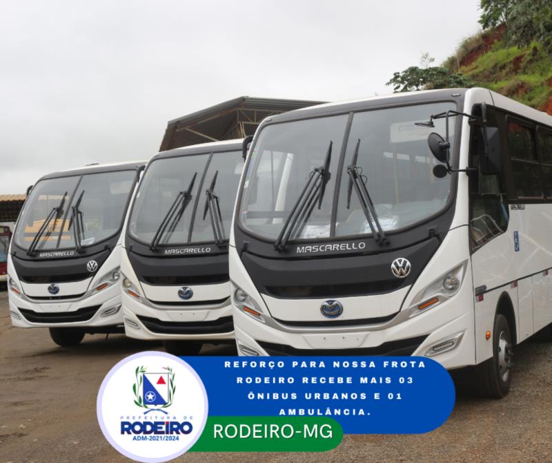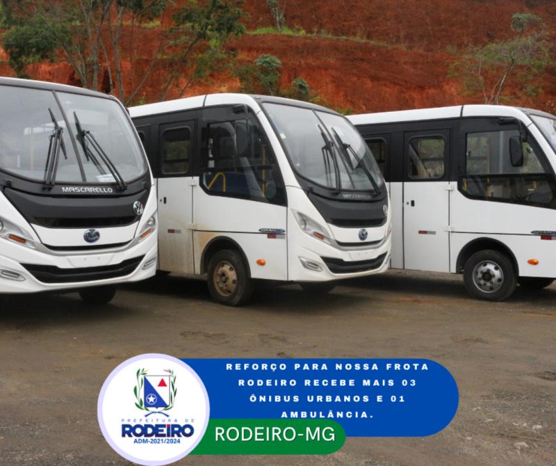 \r\n\r\nRodeiro recebe mais veículos a serem utilizados em nossas secretarias municipais de saúde e educação, neste mês de novembro chegaram mais 3 ônibus escolares urbanos com capacidade de transporte de 20 alunos, e 01 ambulância, ambos veículos são 0KM.